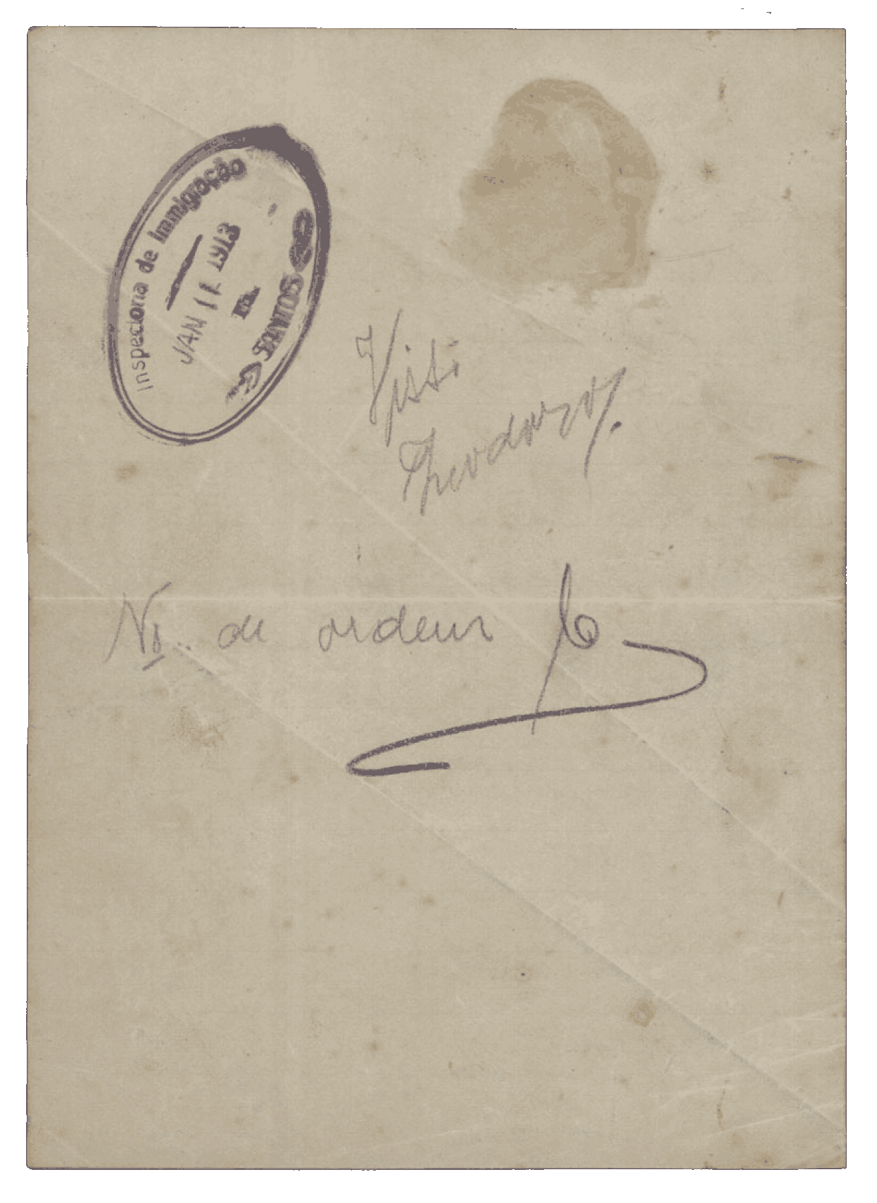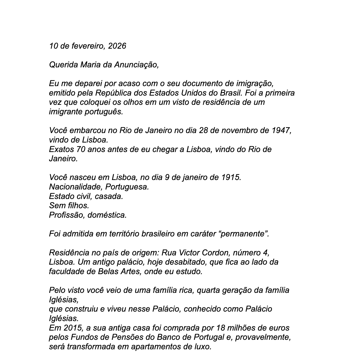 Eu me deparei por acaso com o seu documento de imigração, emitido pela República dos Estados Unidos do Brasil. Foi a primeira vez que coloquei os olhos em um visto de residência de um imigrante português.